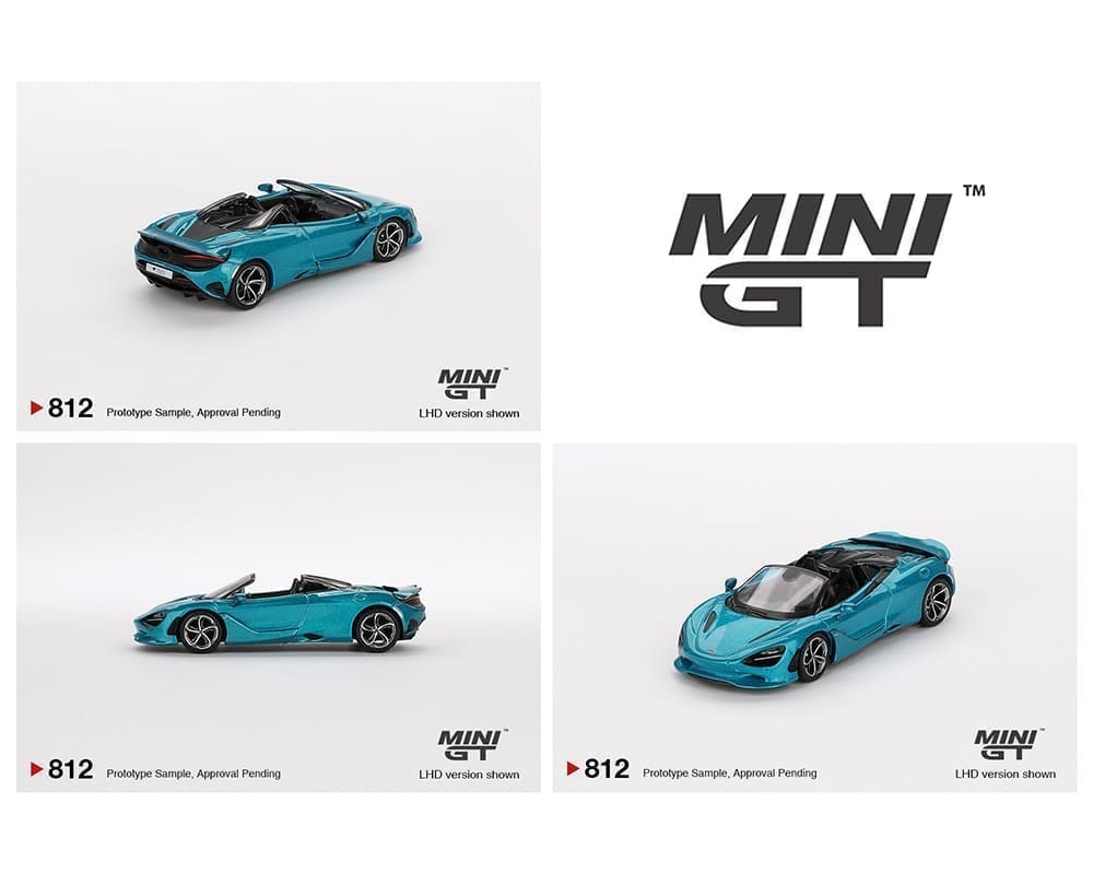 McLaren 750S Spider Belize Blue Mini GT 1:64 scale