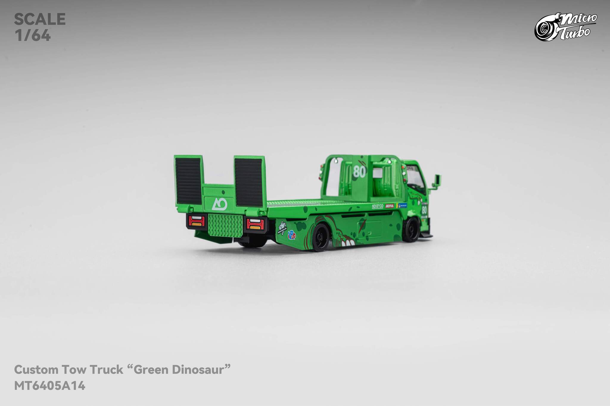 Green Rexy Dino Custom Tow Truck Flat Bed Micro Turbo 1/64 scale